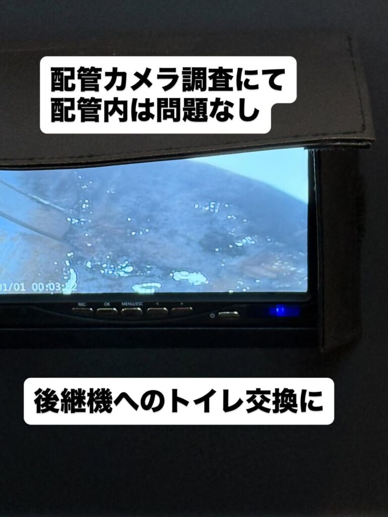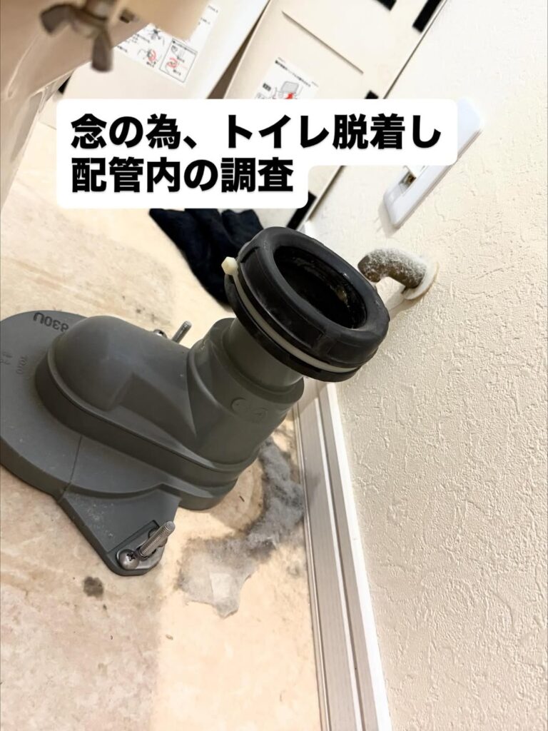 便器脱着、配管カメラにて調査。